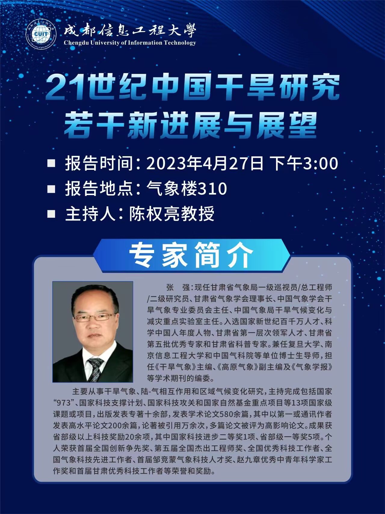 【学术报告预告】21世纪中国干旱研究若干新进展与展望