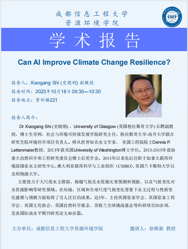 【学术报告预告】Can AI Improve Climate Change Resilience
