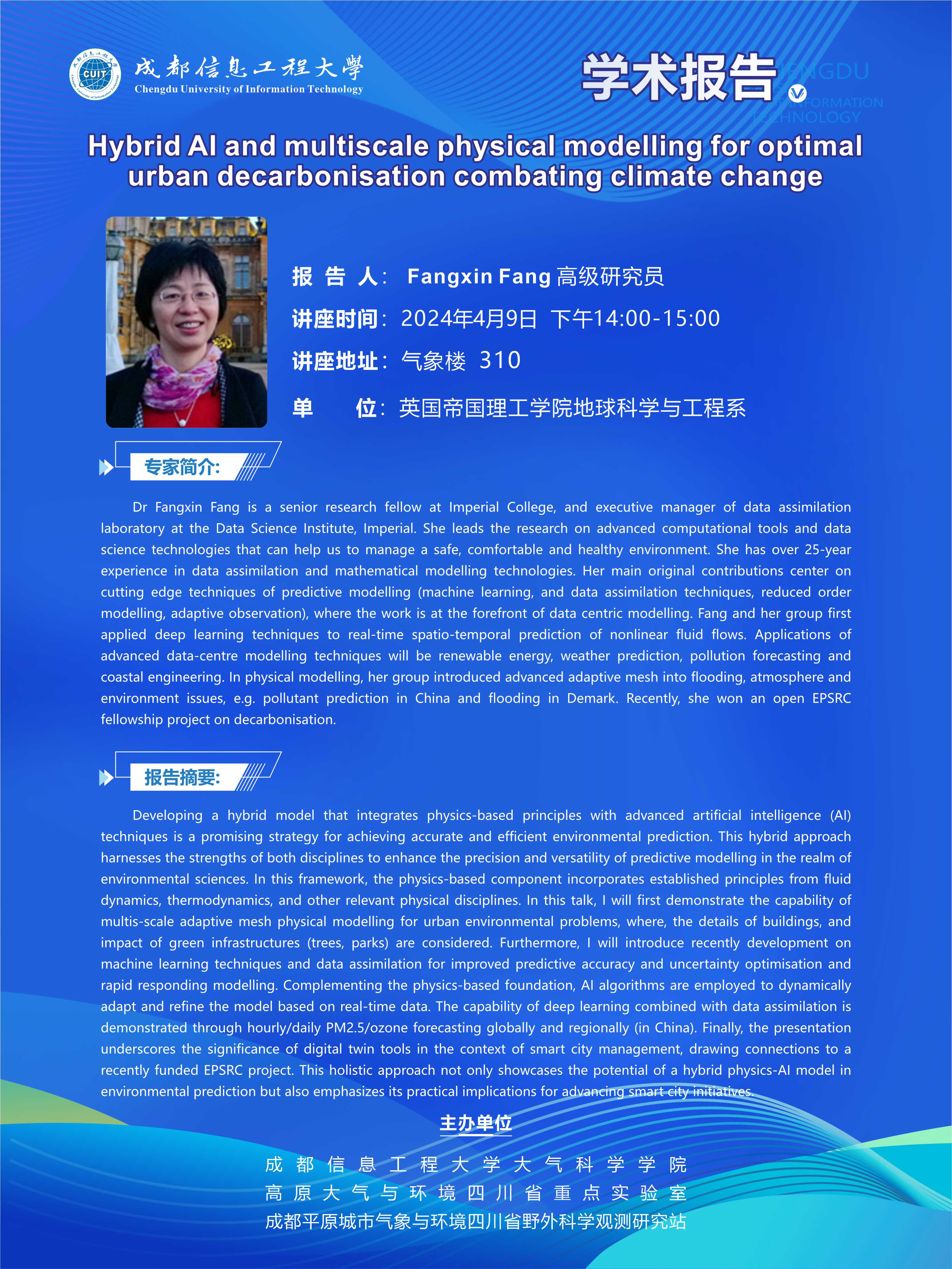 【学术讲座预告】Hybrid AI and multiscale physical modelling for optimal urban decarbonisation combating climate change