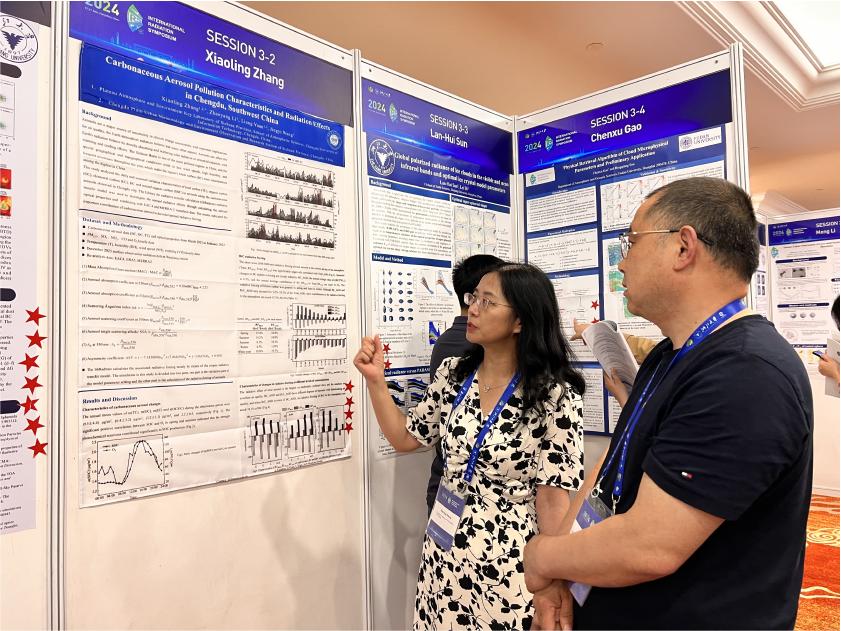 【本网讯】6月17日至21日,2024国际辐射大会(International Radiation Symposium2024; IRS2024)在杭州召开,本次大会由浙江大学主办,国际气象学与大气科学协会(IAMAS)国际辐射委员会(IRC)协办,旨在展示和讨论大气辐射领域的最新研究成果和技术发展。我校大气科学学院张小玲教授、李扬副教授、和周欣副教授应邀参加此次会议,并开展学术交流。张小玲在Session3: ParticalRadiative Properties分会场作题为“Carbonaceous Aerosol Pollution Characteristics and Radiation Effects in Chengdu, Southwest China”的墙报展示;周欣在Session 7: Wether, Climate and Enviroment Applications分会场作题为“Atmospheric and Near-term Climate Impacts of the 2022 Hunga Tonga-Hunga Ha’apai Water-rich Plume”的学术报告;李扬在此分会场作题为“The Impact of El Niño–Southern Oscillation on the Total Column Ozone over theTibetan Plateau”的墙报展示,并与国内外同行进行了热烈的讨论与交流。