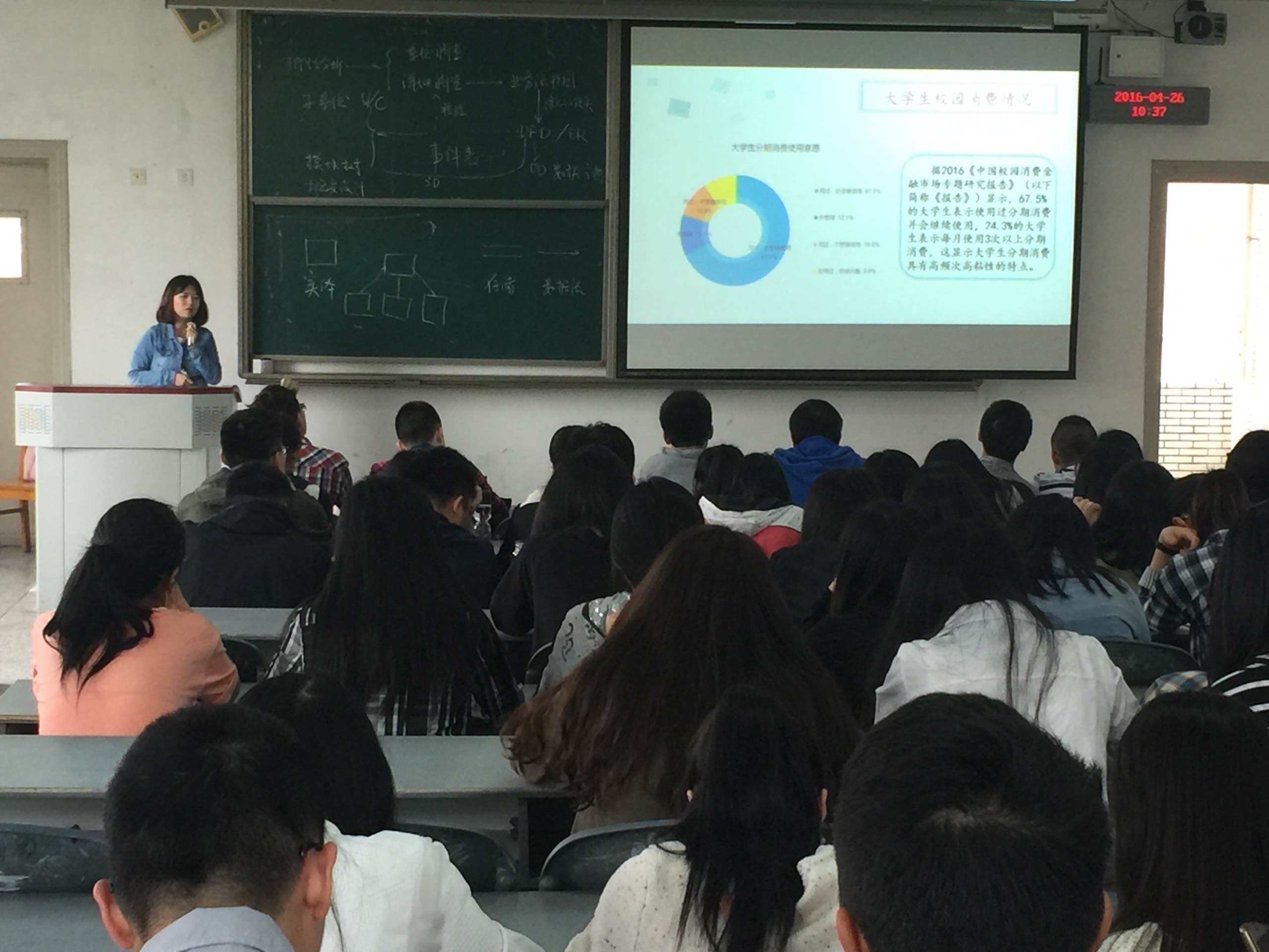 本次班会以“河南牧业经济学院大学生网络贷款赌球 欠巨款后自杀”等大学生贷款真实案例为背景,结合现今超前消费思潮,引导同学们对校园贷款现象进行深刻思考,挖掘校园内存在的不合理消费现象,并告诫同学们切忌盲从追风、超前消费,不做“负债族”,理性消费。尹欣通过讲述已发生的校园悲剧,详细介绍贷款平台运作模式,引导同学们树立正确的消费观和价值观,牢记悲痛教训,合理理财。她强调,作为学生干部,更要抵制物欲诱惑,避免走上害人害己的道路。尹欣说,大学生应经受住诱惑,避过借贷风险,理性而不应“任性”,合理消费才是正确的选择。