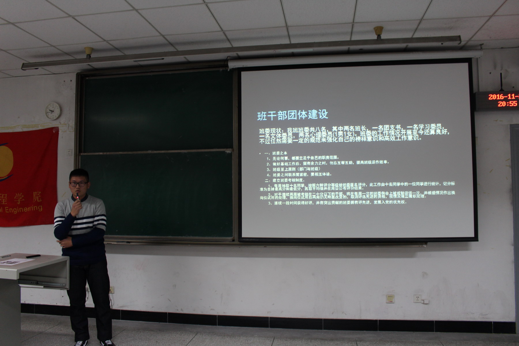 活动伊始,邓丽琴表示了对同学们的期待。同时,她指出,比赛要注意规则和评分规则等细节。随后,各班级的代表都上台做出了精彩的演讲,从班干部管理,班风学风建设和课余生活等方面提出了各自的方案。每个班都根据各班相应的情况制定了班规,并且形成了各班独特的风格。