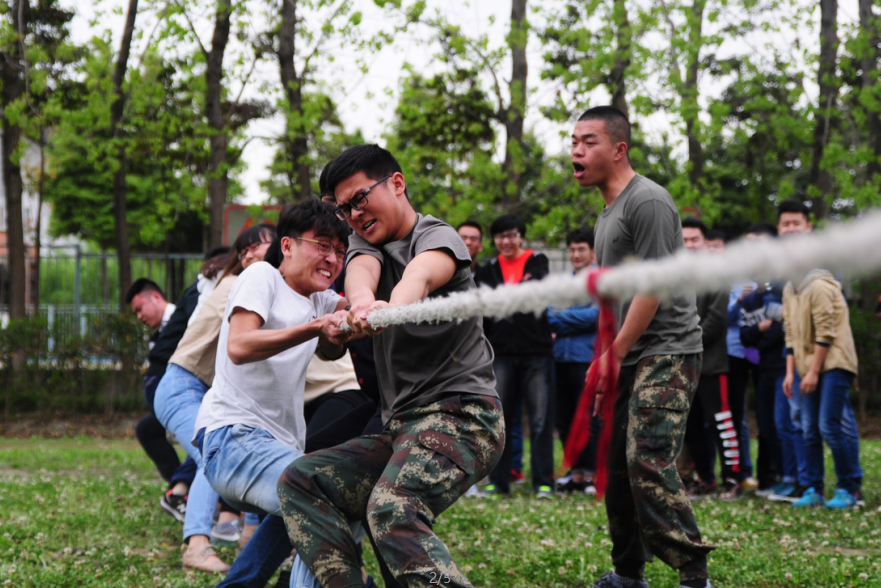 在王燕的带领、国防生学生党支部的组织下,同学们展开了“你画我猜”、“气球接力”、“扑克短跑”、“拔河比赛”等一系列拓展活动。赛前主持人宣布规则并组织志愿者进行演示。活动井然有序进行,同学们保持着高度的热情积极参与其中,团队合作、争优创先意识体现的淋漓尽致。