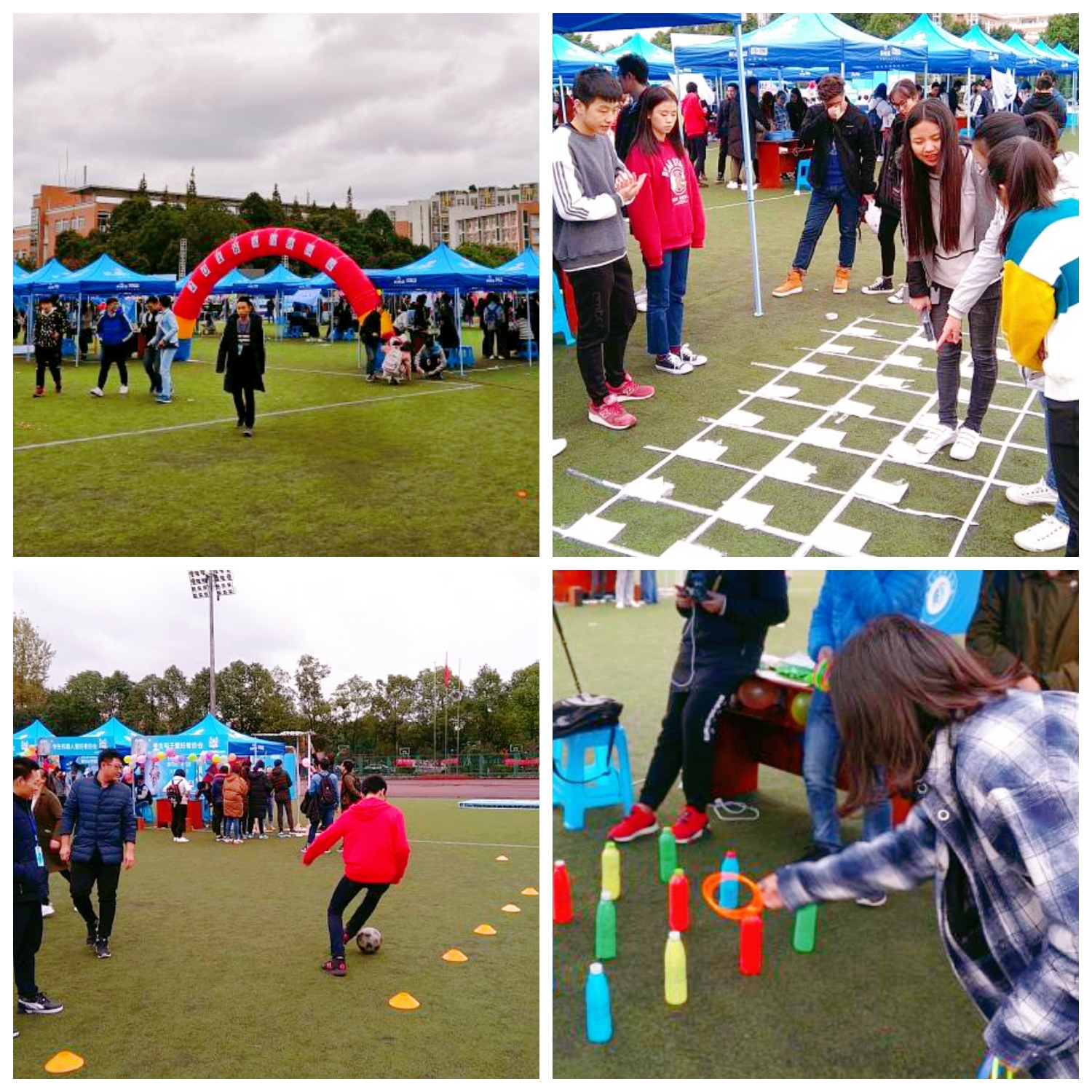 【本网讯】为活跃校园文化氛围,展示学生社团活力风采,11月16日,由校团委主办、校学生社团联合会承办、各学生社团协办的2018“不忘初心”成信游园会在航空港校区第一田径场举行。